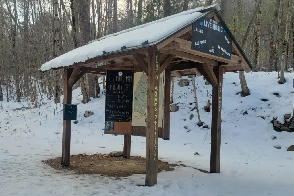 Just a few of the many pieces of art you’ll see when hiking at Andres Institute of Art Located on Route 13 in Brookline, New Hampshire